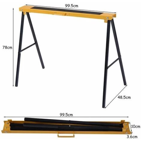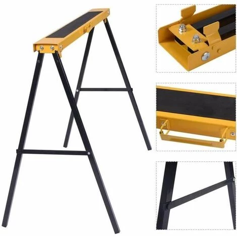 Description: Doté d’une structure solide en fer qui garantit une stabilité optimale et un bon maintien, ce genre de tréteau de travail est idéal pour être utilisé dans un atelier grâce à sa conception pliable, compacte et portable. Sa surface de travail antidérapante empêche un glissement des pièces et peut tenir une charge maximale de 125kg. Caractéristiques: Surface de travail antidérapante Lot de deux tréteaux de travail pliables Essieu de tréteau sciage facile à poser Structure solide en fer Stabilité optimale et bon maintien Charge maximale jusqu’à 125kg Poignée sur le côté du tréteau pliant qui facilite le transport Spécifications: Couleur : jaune Dimensions de tréteau ouvert : 99,5×48,5x78cm Dimensions de tréteau plié : 99,5x10x3,6cm Charge maximale : 125kg Poids : 7,6kg Livraison: 2 x Tréteau pliant 1 x Manuel de l’utilisateur Attention: On vend ce produit seulement dans la France métropolitaine