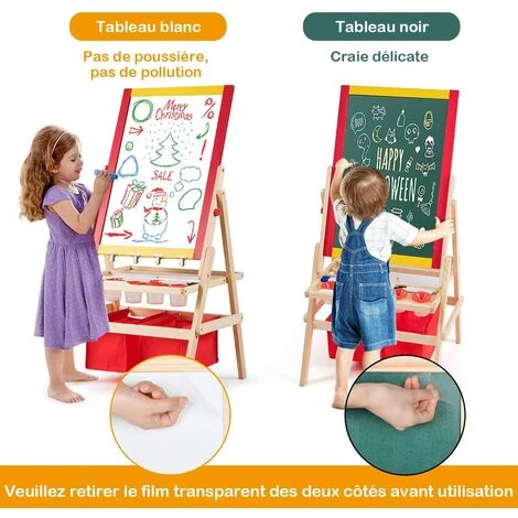 Tableau pour enfant magnétique double tableau blanc et tableau noir pour prendre en charge la peinture séparée