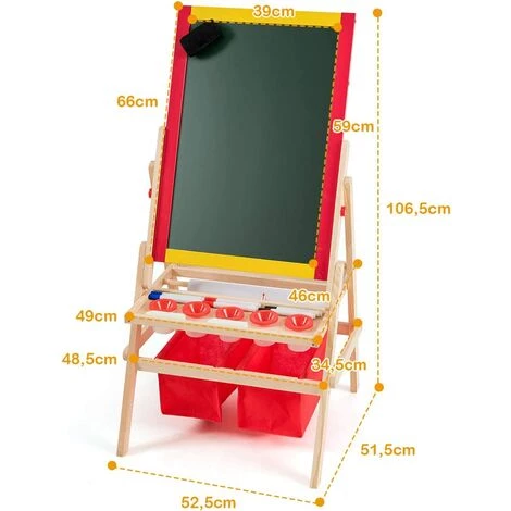 Équipé d’un tableau noir magnétique double face, votre enfant peut jouer avec son ami pour peindre le tableau noir et le tableau blanc en même temps. Il y a également un rouleau supérieur avec du papier à dessin qui offre plus d’espace pour les jeunes artistes. Le grand plateau situé sous la planche à dessin est pratique pour ranger divers accessoires de peinture et les retrouver plus facilement. Les enfants peuvent peindre et écrire avec notre chevalet d’art pour exercer pleinement leur imagination.