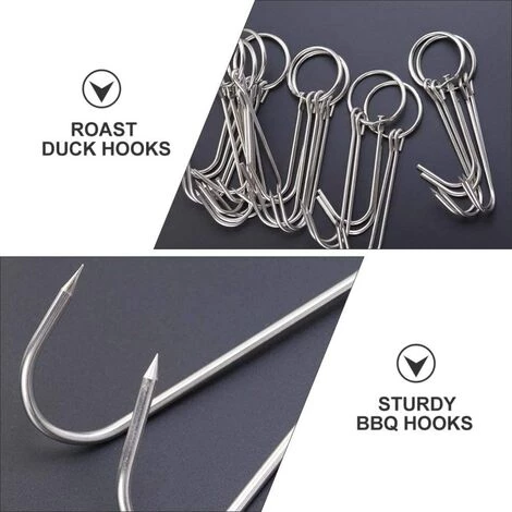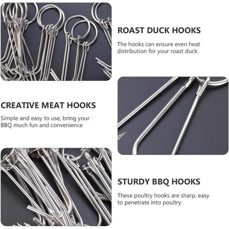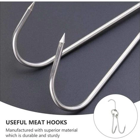 DescriptionDouble Crochets à Viande de Grillage En Acier Inoxydable Crochet Bacon Jambons La Viande De Canard Crochet De Boucher Cuisson Fumeur Crochet Cintre pour BARBECUE Grill séchage. Barbecue De Poulet ou De Canard Crochets, transformation de la viande usine, barbecue traitement, suspensions de viande, etc.Caractéristiques-Taille: 23. 00X5. 00X0. 35cm/9. 04X1. 97X0. 14 pouces.-Couleur: Argent.-Matériel: acier Inoxydable.Paquet Comprenant6 x viande crochets
