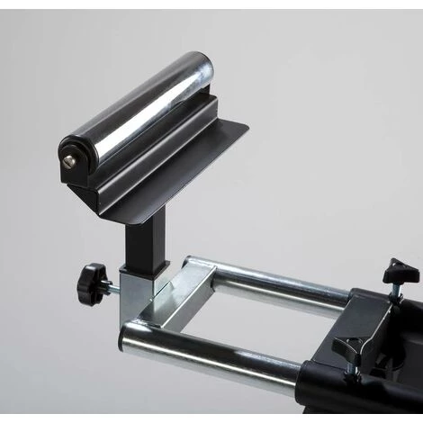 La construction permet une charge allant jusqu’à 150 kg. Les patins à roulettes fournis peuvent être réglés en hauteur jusqu’à environ 99 cm. Extensible latéralement jusqu’à une largeur totale d’environ 203 cm, elle convient donc parfaitement à l’usinage de pièces très longues.